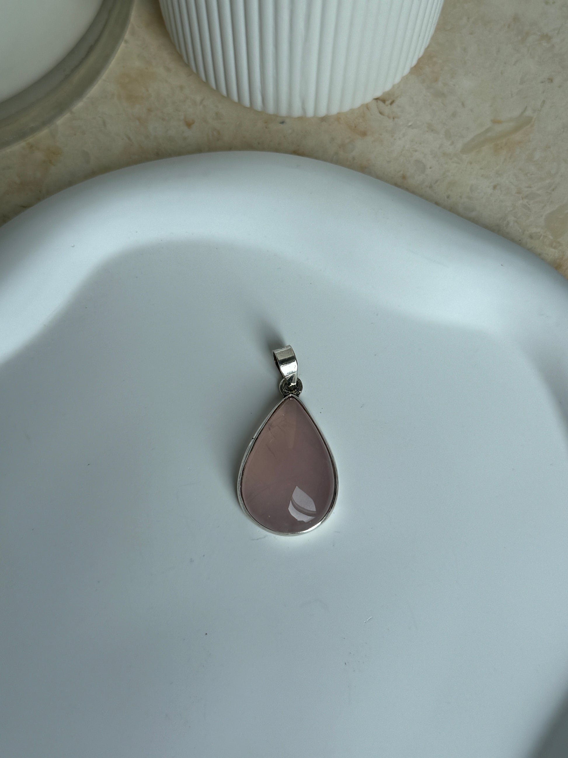 925 Sterling Silver Rose Quartz Teardrop Pendant