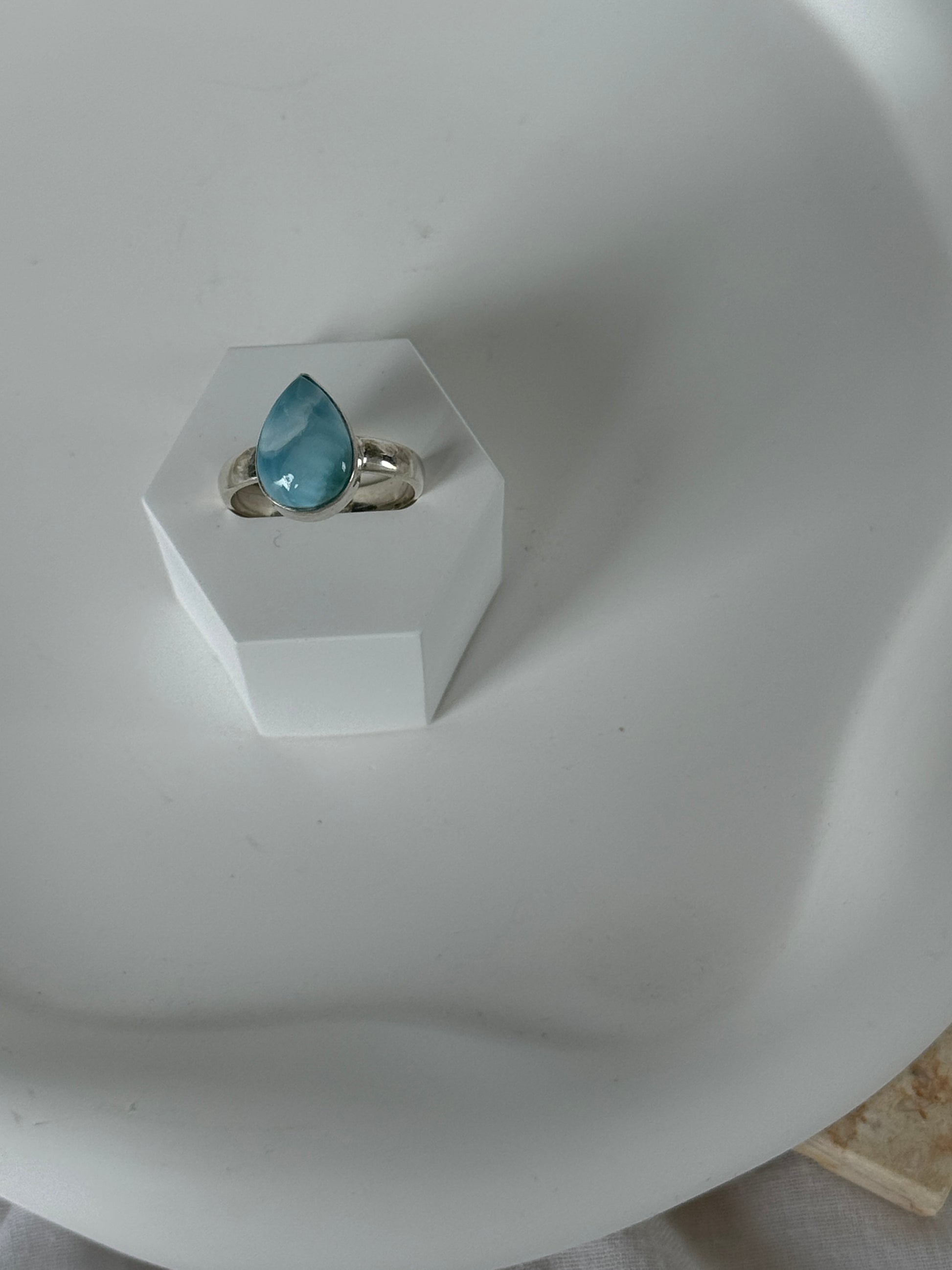 925 Sterling Silver Larimar Teardrop Ring