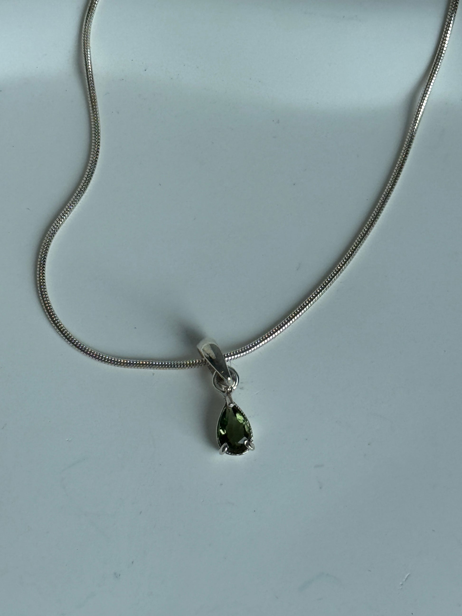 925 Sterling Silver Moldavite Necklace Faceted