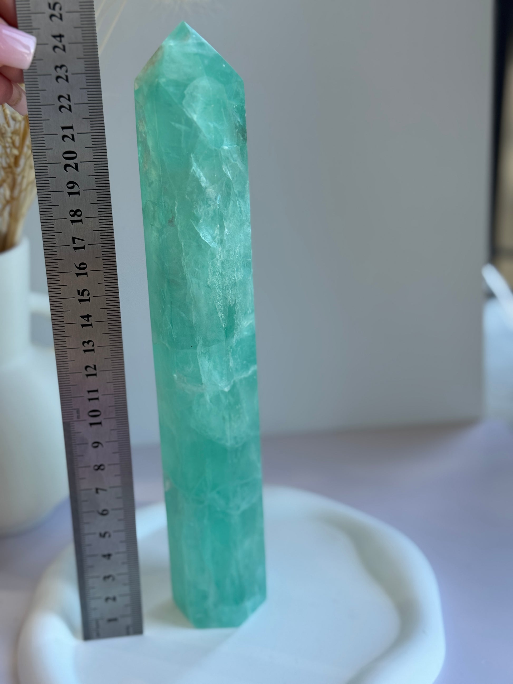 Fluorite also helps harmonise energy centers, aligning the third eye and crown chakras for deeper insight, spiritual clarity, and aligned decision-making. Place it near your workspace, meditation corner, or bedside to invite calm focus, restful sleep, and clarity of thought.