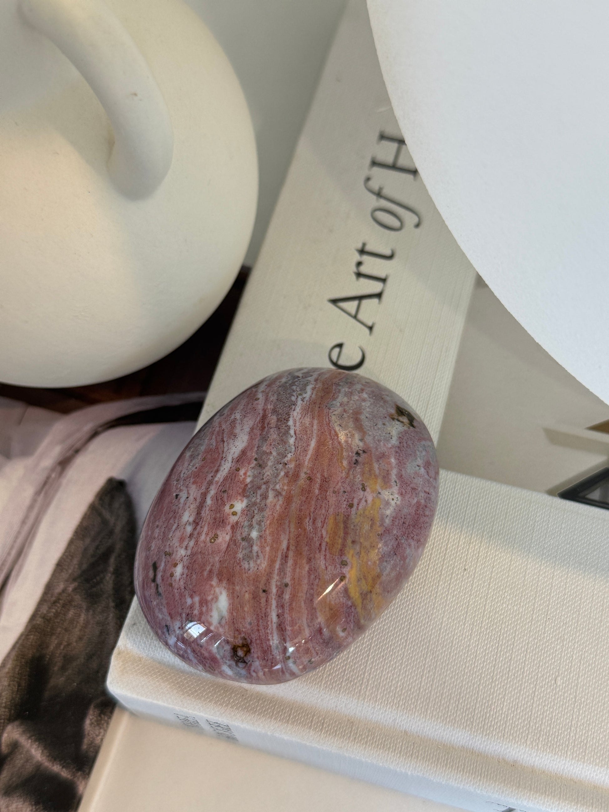 This stone gently releases stress, heaviness, and stagnation, replacing it with optimism and flow. Ocean Jasper reminds you to breathe, slow down, and trust the natural rhythm of life. Its nurturing vibration supports emotional healing, helps dissolve old emotional patterns, and reconnects you with your playful, joyful essence.
