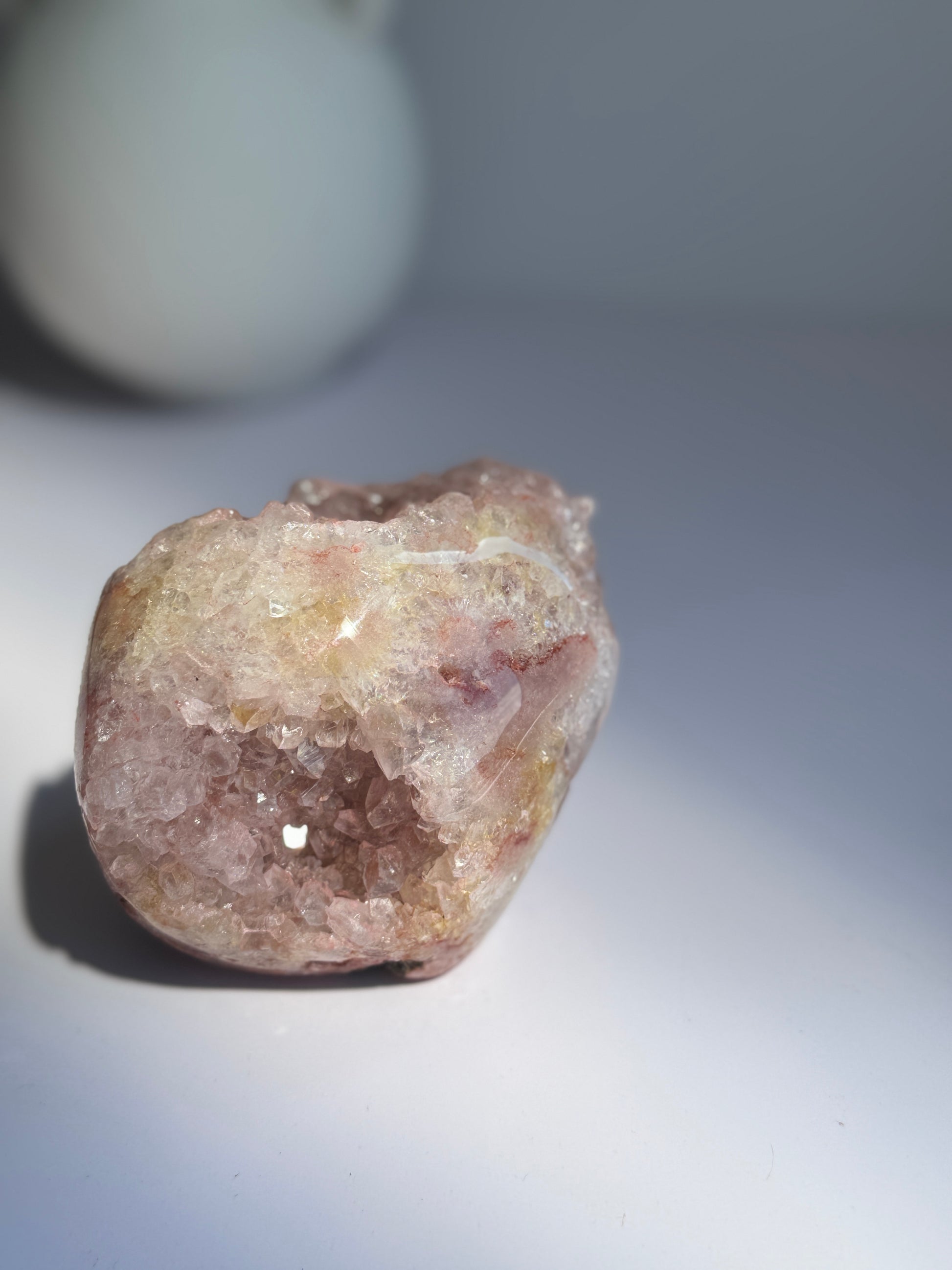 Pink Amethyst is a rare and deeply soothing gemstone that carries the gentle vibration of unconditional love. Unlike traditional purple amethyst, this pastel beauty radiates a softer, heart-centered energy that nurtures emotional healing, compassion, and inner harmony.