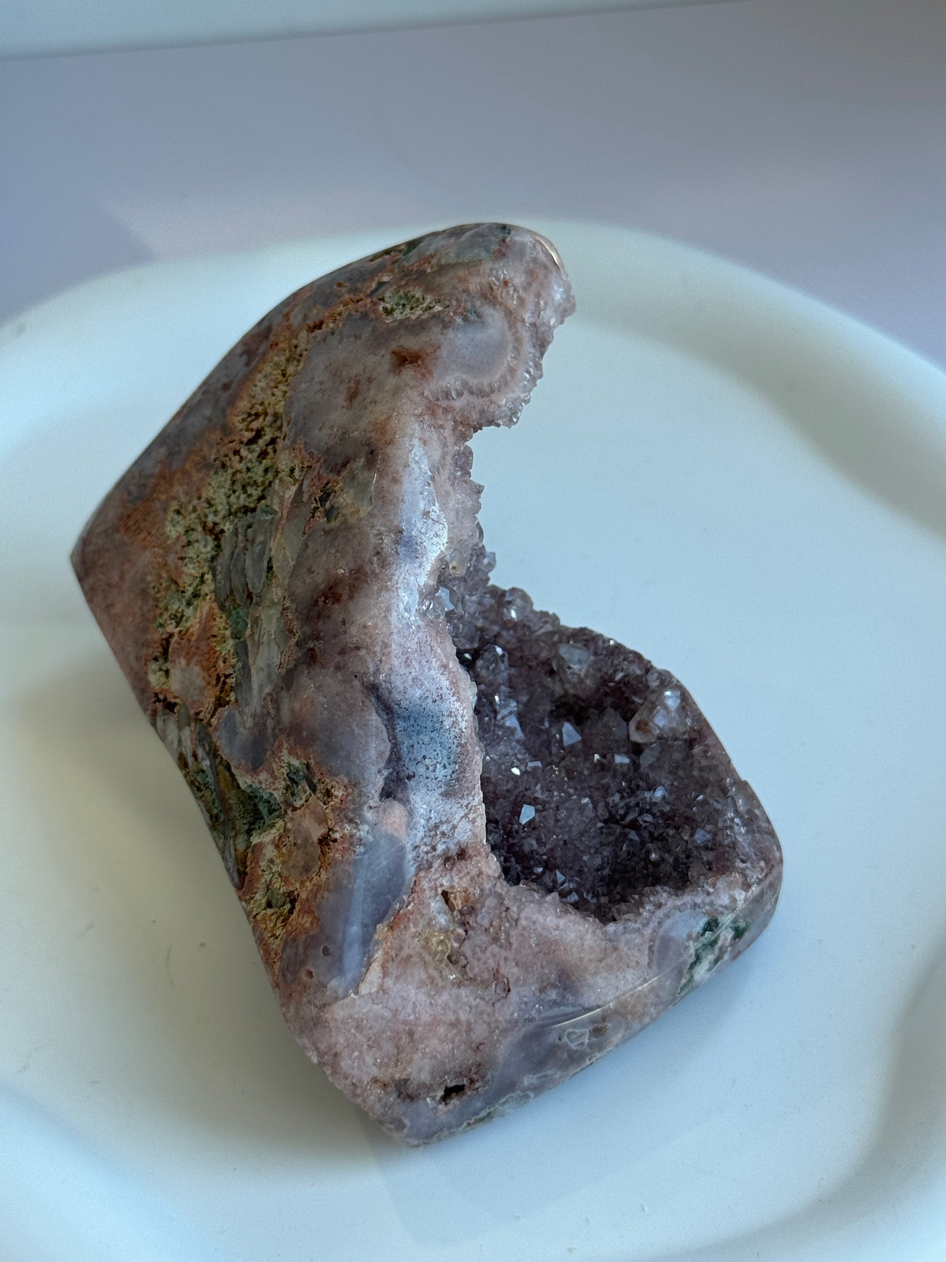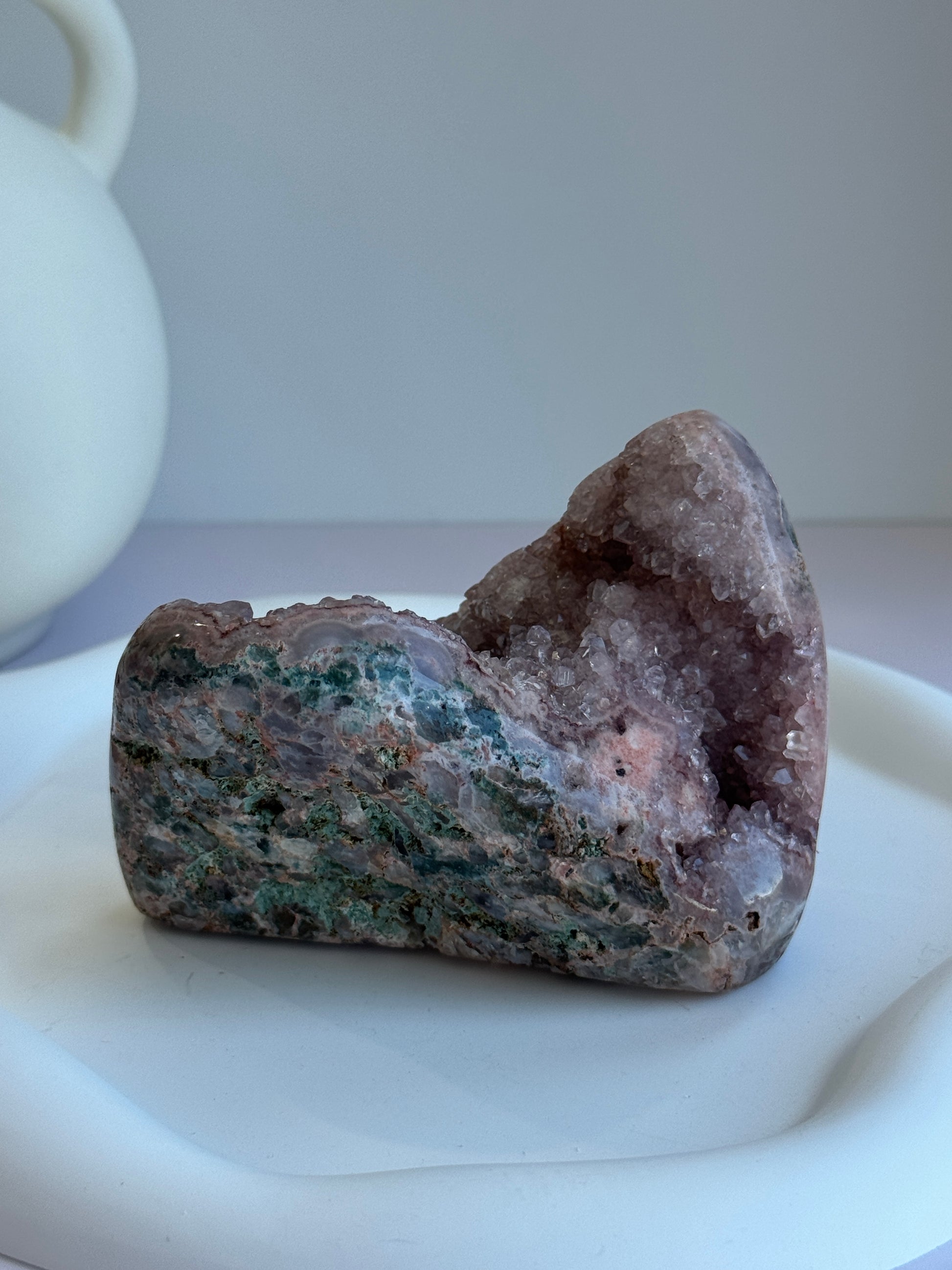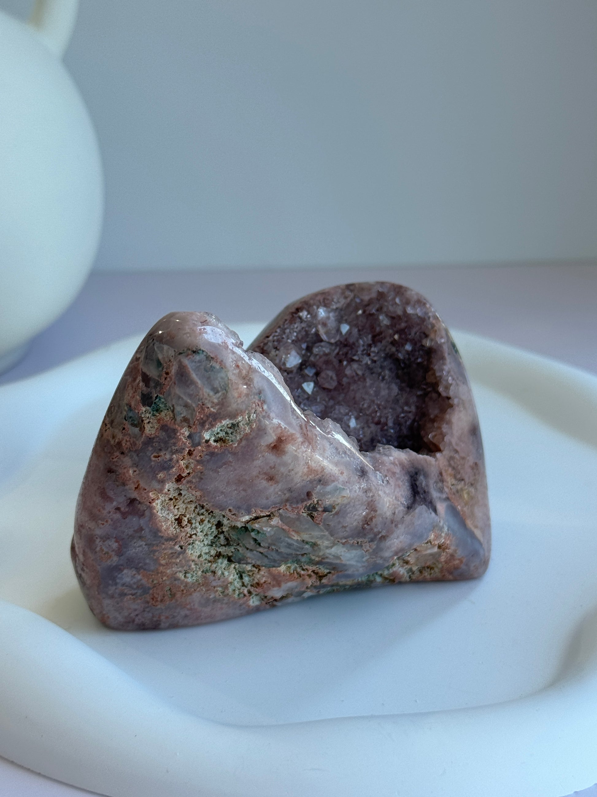 Its loving frequency dissolves stress, eases emotional overwhelm, and comforts the heart during times of transition or grief. Pink Amethyst is also a powerful protector, creating a serene energetic shield that blocks negativity while inviting peace, clarity, and self-acceptance.