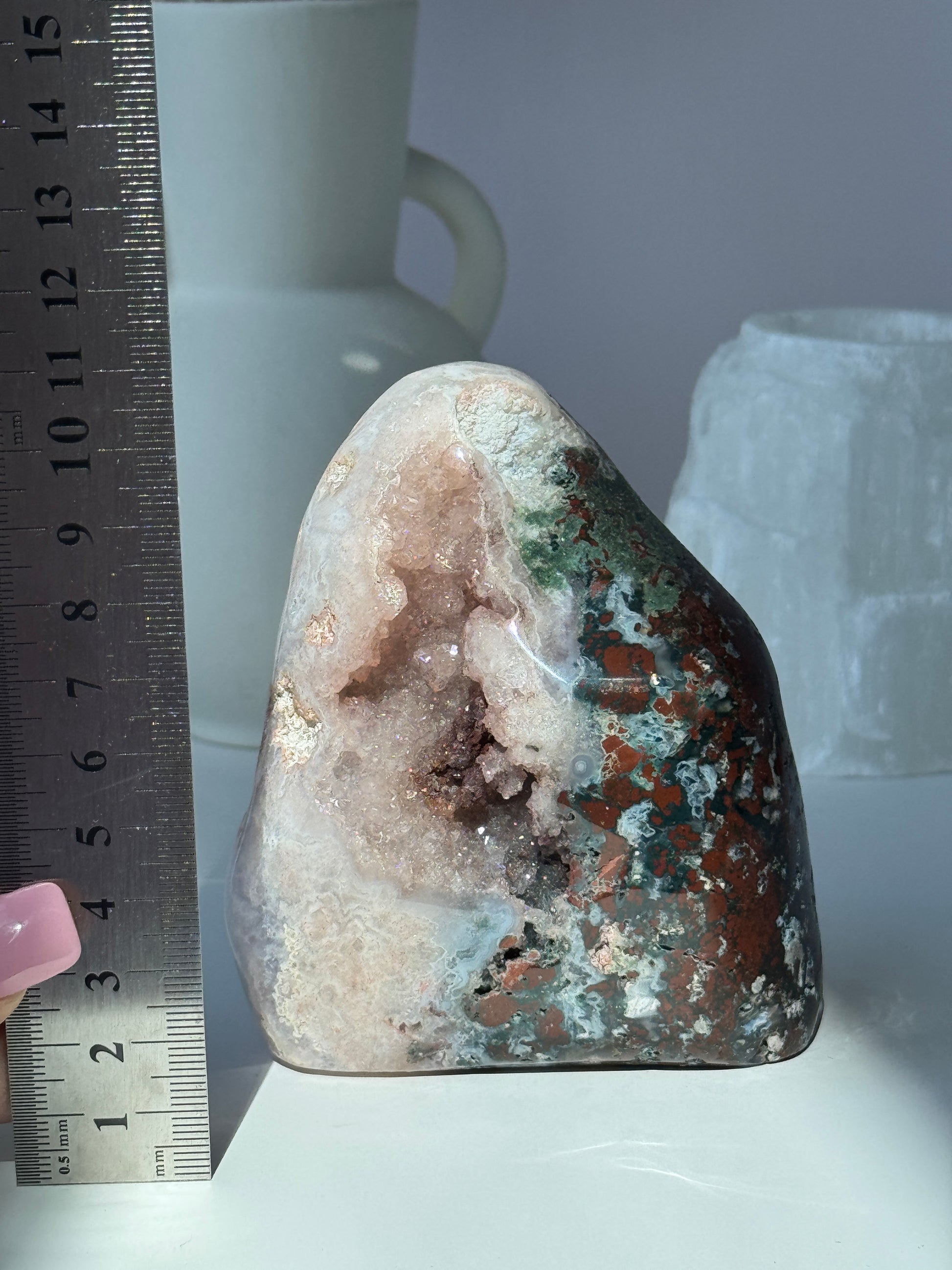 Pink Amethyst works like a soft veil of light around your aura. Spiritually, she: