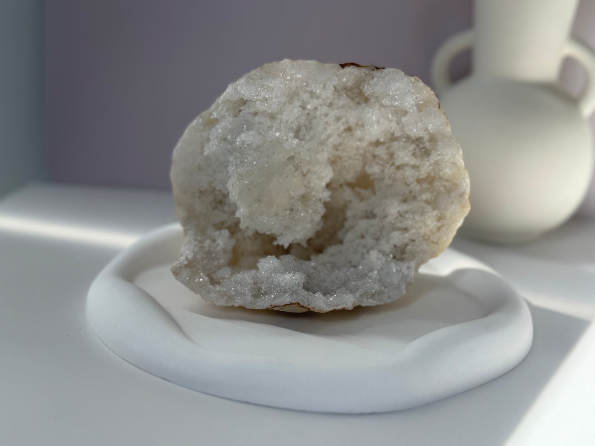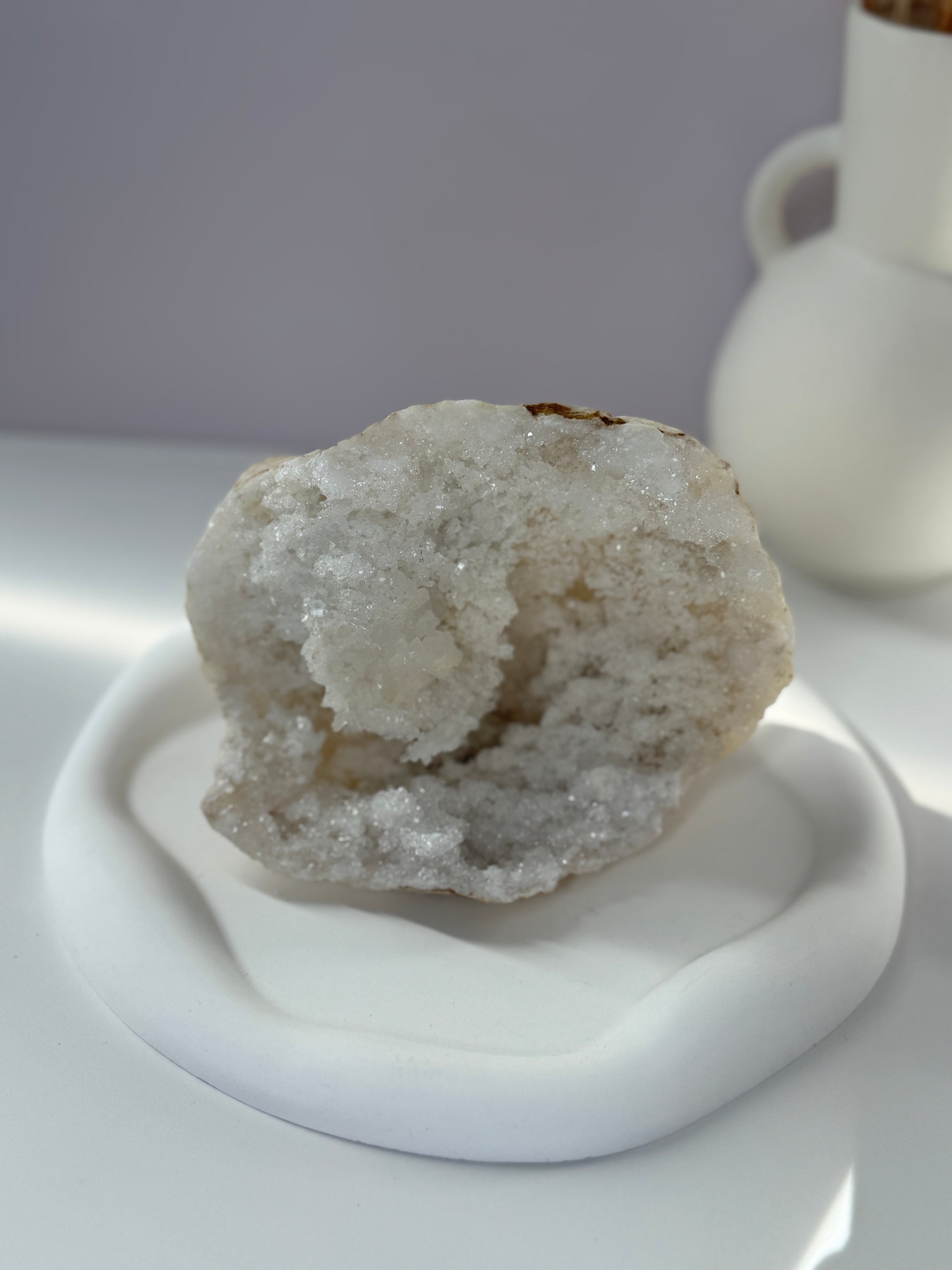 Add a touch of natural beauty to your spiritual practice with our intuitively selected Quartz Geode Halve. Each halve is carefully chosen for its unique spiritual properties, bringing positive energy and balance to your life. Embrace the power of nature and enhance your spiritual journey with this special piece.