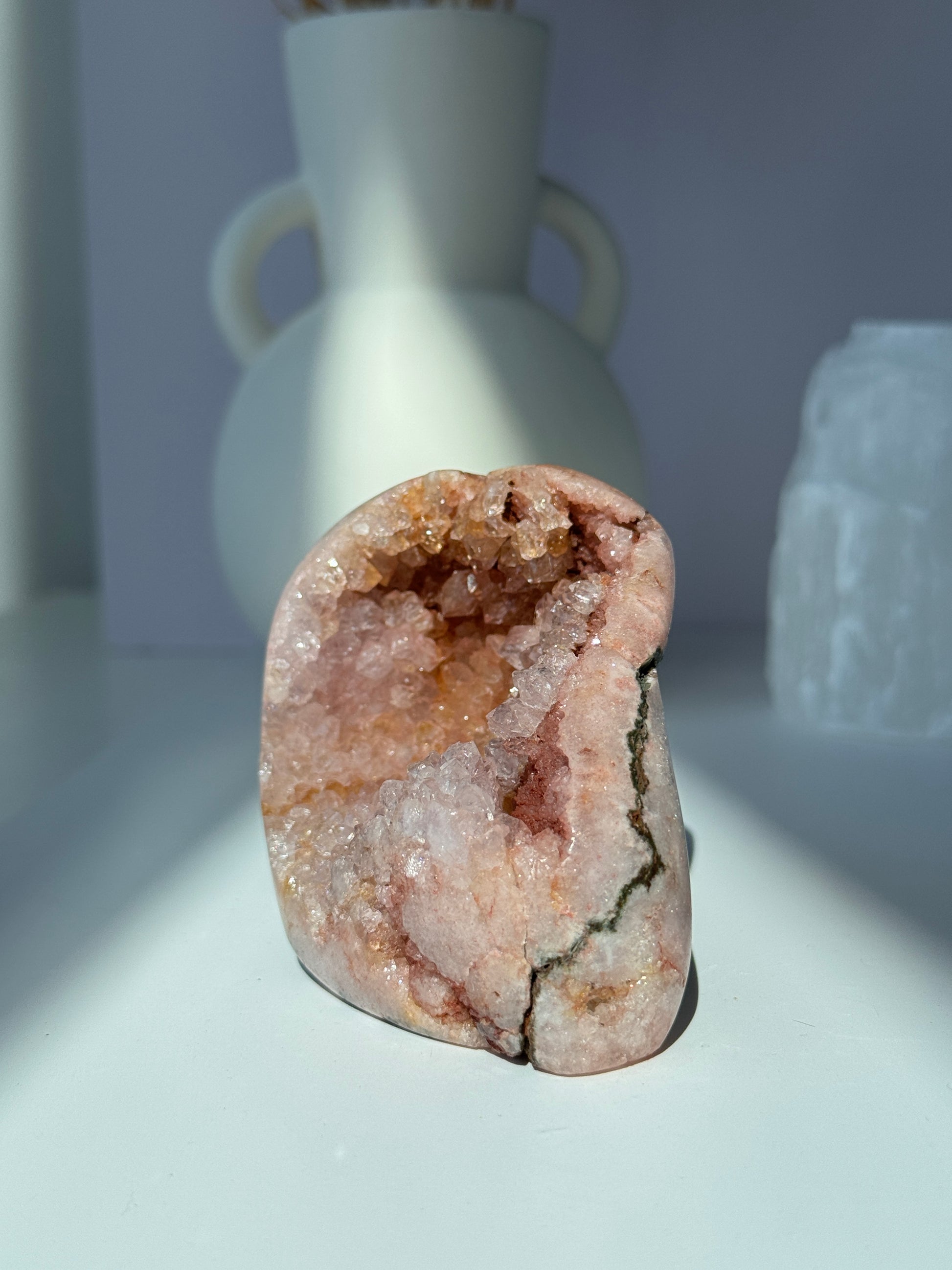 Its loving frequency dissolves stress, eases emotional overwhelm, and comforts the heart during times of transition or grief. Pink Amethyst is also a powerful protector, creating a serene energetic shield that blocks negativity while inviting peace, clarity, and self-acceptance.